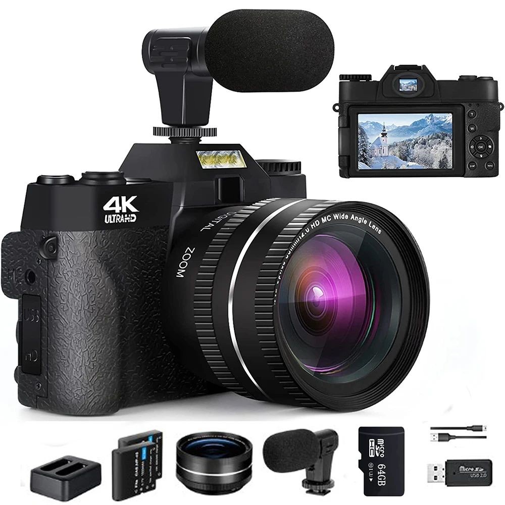 4K Digital Camera for Photography Video Autofocus Anti-Shake 64MP YouTube Vlogging Camera